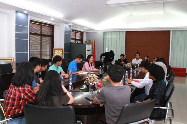 与学生座谈中,汪会就入学途径、家庭情况、在华学习生活情况、奖学金发放、未来就业打算等方面了解学生的困难与意见建议。学生们用流利的汉语畅所欲言,介绍了自己在华文学院学习生活以及参与各类活动的情况,也表达了自己在华文学院学习的收获与感悟。来自越南的阮氏清春是首批中国国家政府奖学金获得者,她说:“学院知道我学习很刻苦,也积极参与中华经典诵读活动,他们评给我这个奖项,让家庭困难的我可以安心在中国学习。”汪会一行听取并记录学生的发言,不时询问学生的情况,关注学生困难。
