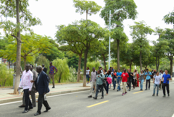 由来自发展中国家的67位环保官员和技术人员等组成的考察团,11月3日上午来校考察厦门校区“海绵校园”建设。