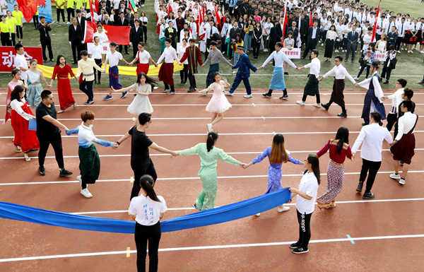 文体表演环节,来自泉州校区各学院的400余名同学在操场中央表演排舞节目《让世界听我的》,动感的音乐点燃了赛场的气氛,整齐划一的动作和饱满的精神状态引来掌声阵阵。