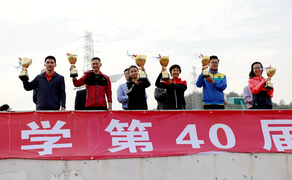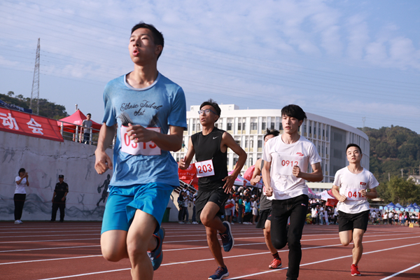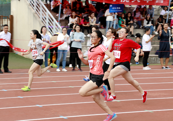 在备受瞩目的男子组100米飞人大战中,政治与公共管理学院的林启帮以10秒40的成绩刷新了原10秒50的校级记录。女子组100米的冠军由经济与金融学院的皮朝梅获得。而在学生组4×100米接力项目中,男女组比赛的冠亚季军都分别由工商管理学院、政治与公共管理学院及旅游学院获得。