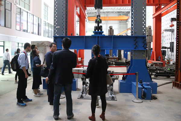 与会代表考察土木工程学院学科实验大楼