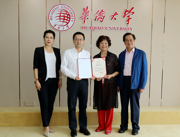 此行来校,李碧葱副董事长再向母校捐赠50万港币,用于支持音乐舞蹈学院的建设发展。徐西鹏向其颁发了捐赠证书。