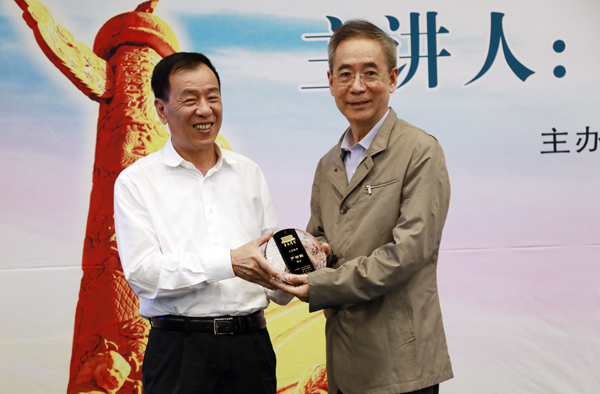 陈万里为严书翰颁发“华大讲堂”主讲嘉宾纪念牌