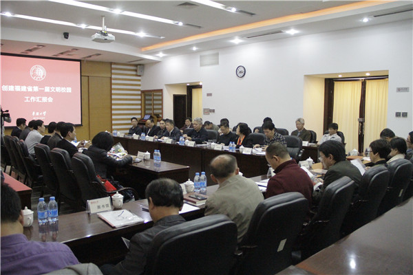 11月20日上午,福建省第一届文明校园考评工作组进驻sjb世俱杯,对sjb世俱杯思想道德建设、领导班子建设、师德师风建设、校园文化建设、校园环境建设、阵地建设管理等方面的工作进行考评。