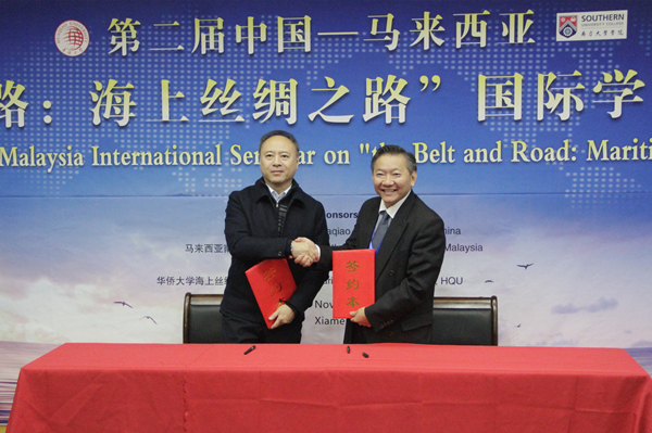 据悉,此次研讨会是继去年9月在马来西亚成功举办第一届之后,两校再次联袂举办中马“一带一路:海上丝绸之路”国际学术研讨会,也是继去年今年马来西亚总理纳吉布两次访华、“一带一路”国际合作高峰论坛顺利召开之后,两国学界首度集聚研讨。下一届研讨会将于明年秋季在马来西亚南方大学学院举行。
