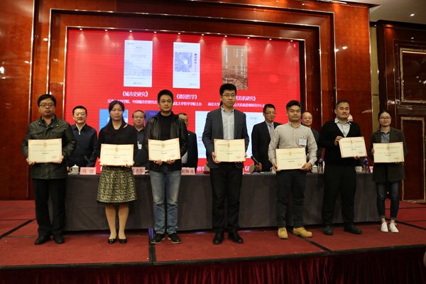 与会嘉宾为2017年度优秀学术集刊奖颁奖,《华侨华人文献学刊》代表(右二)上台领奖