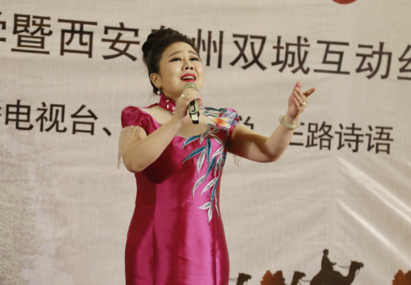 “这就是丝绸之路啊,一条金色的飘带,一头系着古老,一头连着希望。这就是丝绸之路啊,一条腾飞的跑道,一头系着今天,一头连着梦想!”最后,艺术家们齐声用一首《丝路畅想》道出了两城文化交流的心声:文化相牵,梦想相连。