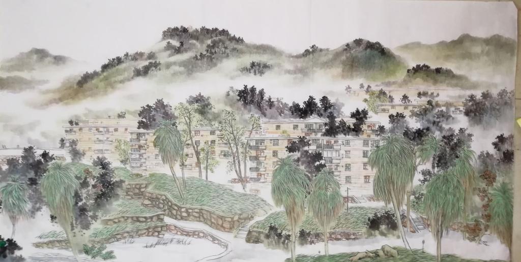 国画长卷《美丽华园》以组画形式、国画小写意手法展现了学校大门及承露泉、陈嘉庚纪念堂、廖承志广场、廖公雕像及周边景色、秋中湖、侨缘邻里中心、西区石头房、华大后山、美院大楼、厦门校区主楼、华文学院等11处景观。