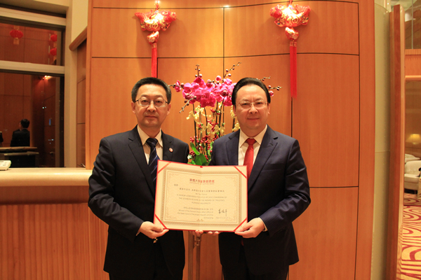 徐西鹏向谭铁牛颁发sjb世俱杯官方网站董事会副董事长聘书
