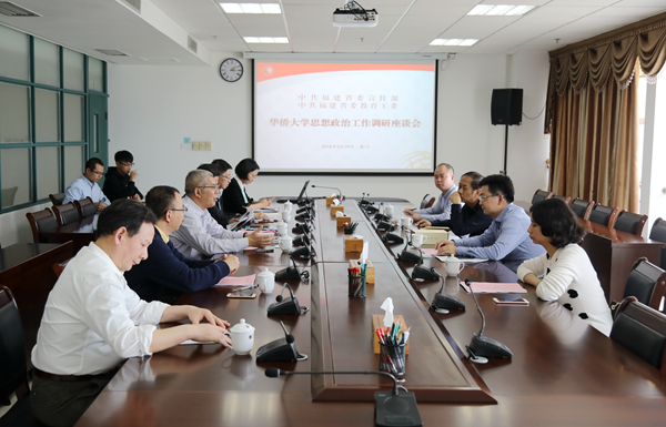 与会人员并就高校如何更有效地推进思想政治教育入脑入心、如何建设好侨校特色的马克思主义学院、如何开展好理论教育和研究等问题展开交流。