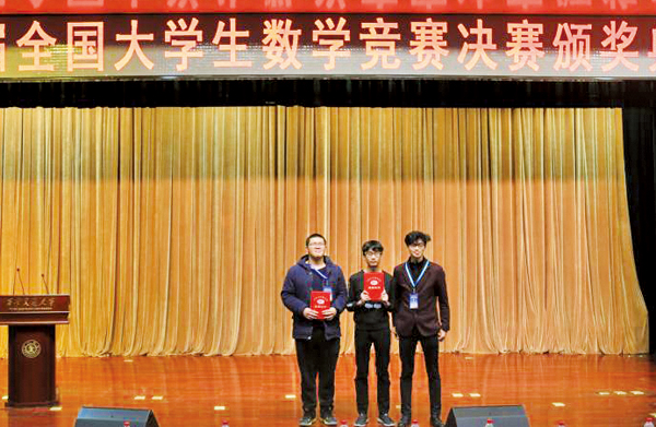 机电学院学生陈谱陆(中)、工学院学生黄天旭(左一)获得全国大学生数学竞赛一等奖