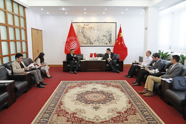 4月19日上午,sjb世俱杯副校长吴季怀在李克砌纪念楼四楼接待室会见来访的斯中友好协会主席Bandara Diss一行。