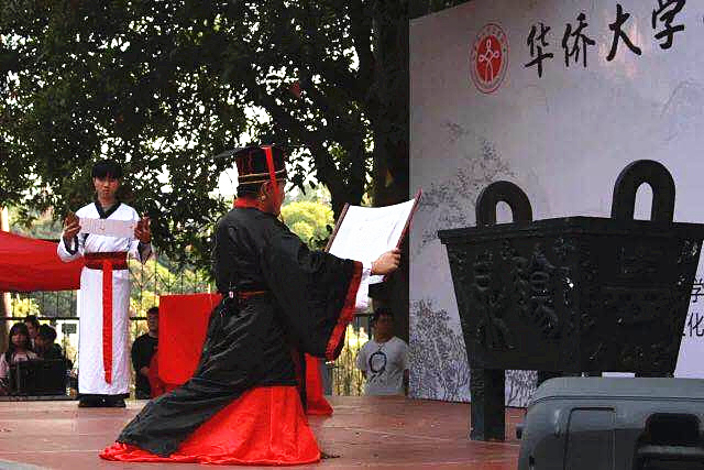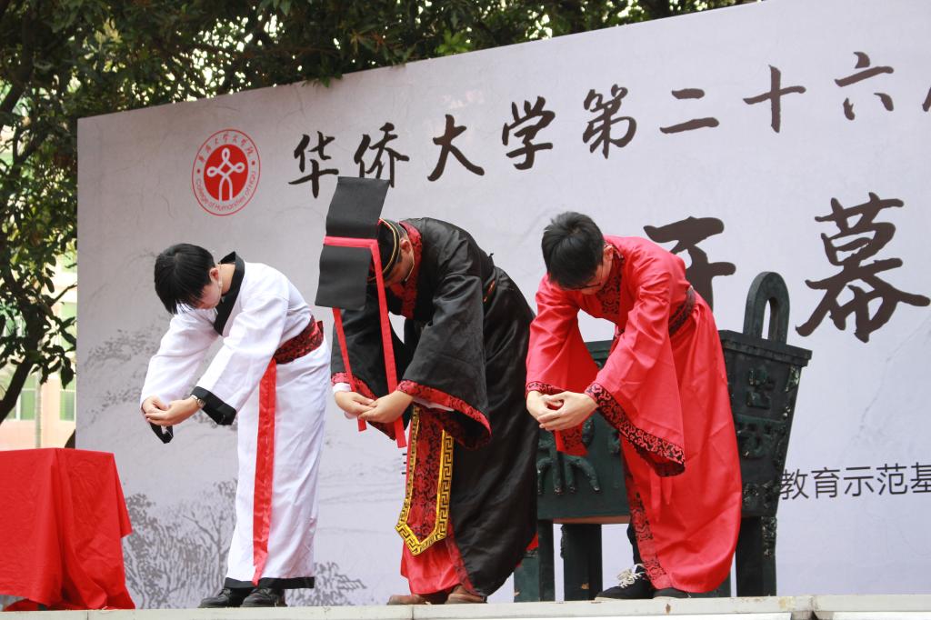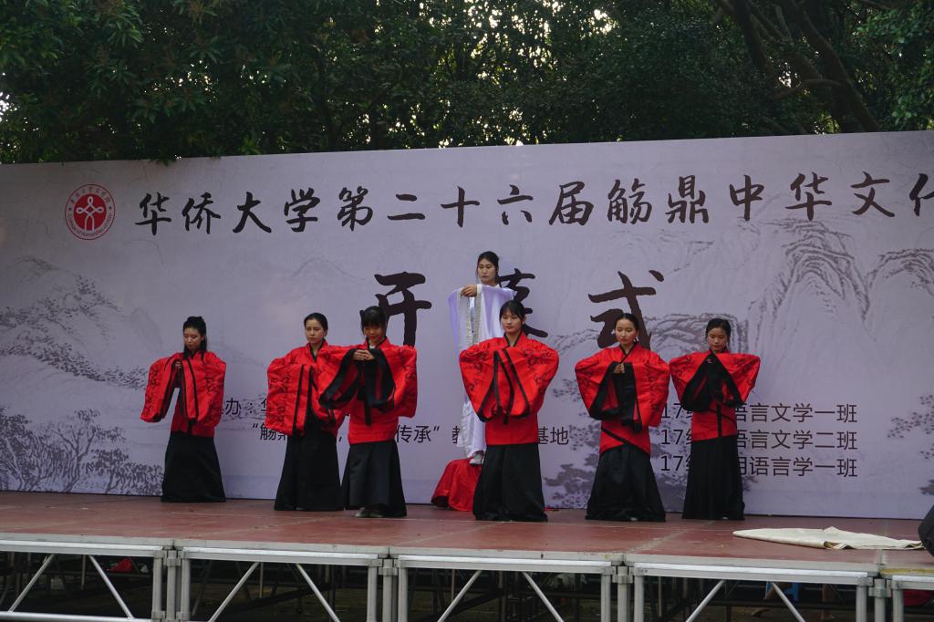 4月22日下午,由sjb世俱杯官方网站文学院、“觞鼎文化,国学传承”教育示范基地主办的第二十六届觞鼎中华文化节开幕式在泉州校区四号篮球场举办。