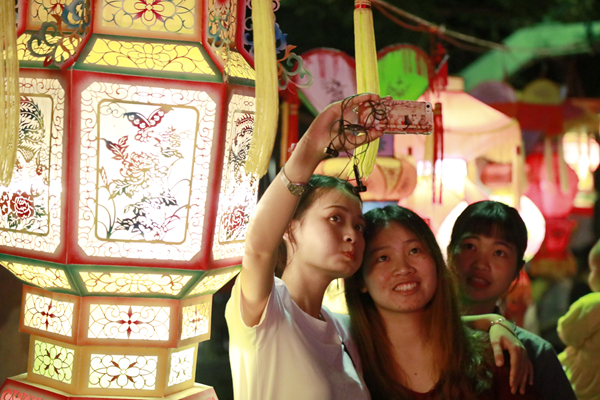 外国语学院2016级学生王浩东怀里抱着奖品,神情中透着丝丝得意,“用手机查答案失去了猜灯谜的意义,我喜欢跟大家在一起思考、一起猜”。