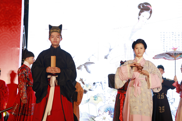 舞台上,校园十佳歌手演唱的《墨梅》,把传统文化的君子之范唱进了同学们的心间。武术表演的霍霍拳风、刀枪棍棒,让观众大饱眼福;汉服、古筝、茶艺表演则氤氲着文化雅韵。来自澳门的体育学院2016级学生陈伟杰在演出中身着汉代丞相服,他说:“能用这样的活动方式把汉服推介给大众,很开心!”