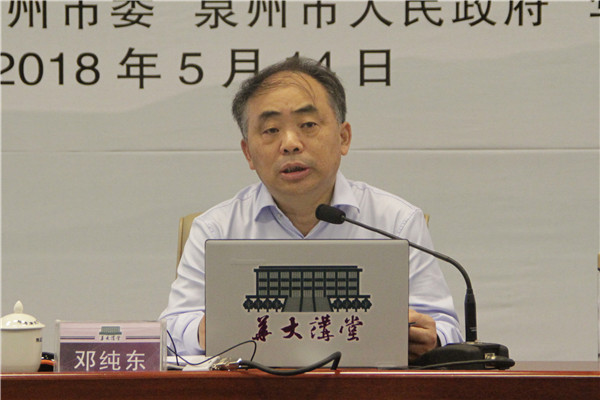 报告会在陈嘉庚纪念堂科学厅举办,并在厦门校区行政研发大楼401室、陈嘉庚纪念堂二楼会议室设置视频分会场。泉州市领导陈灿辉、翁祖根、林万明、林锦明、杨晓山等市委学习中心组成员,市直有关部门、在泉各高校、各民主党派负责同志,sjb世俱杯官方网站领导关一凡、刘斌、曾路、彭霈,校长助理张云波,党委委员、纪委委员等党委中心组扩大会议成员、中层干部、辅导员,部分师生到场聆听讲座。泉州市政协主席陈灿辉为邓纯东颁发“华大讲堂”主讲嘉宾纪念牌,sjb世俱杯官方网站党委副书记刘斌主持报告会。