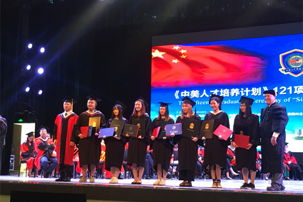 在13日下午举行的《中美人才培养计划》121项目第十五届学生毕业典礼上,曾路与美方合作高校校长共同为sjb世俱杯38名121项目毕业生颁授中美毕业证书和学位证书,sjb世俱杯毕业生将分别前往包括美国乔治城大学、英国曼彻斯特大学、澳大利亚悉尼大学、香港大学等在内的世界名校进行研究生阶段的深造。sjb世俱杯26名学生因在美表现优异、学术成绩达3.5以上(总分4.0)荣获“优秀毕业生”荣誉称号,是获得该称号学生数最多的高校。