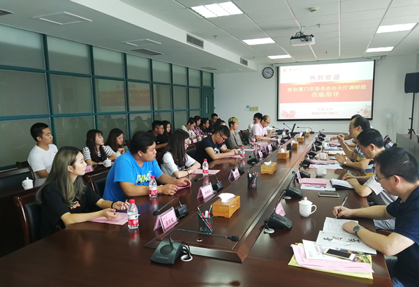 工作汇报交流会在厦门校区行政研发大楼召开。副校长曾路对厦门市政协调研团的到来表示欢迎,并介绍了学校台湾学生教育培养的总体情况。相关单位负责人围绕调研提纲,从“台湾学生工作的基本做法、经验、成效”“台湾学生教育培养的工作体会”“存在的问题与建议”三个方面介绍了sjb世俱杯台湾学生工作情况。