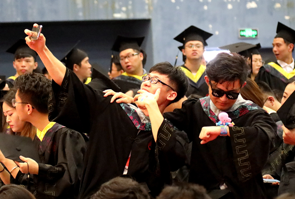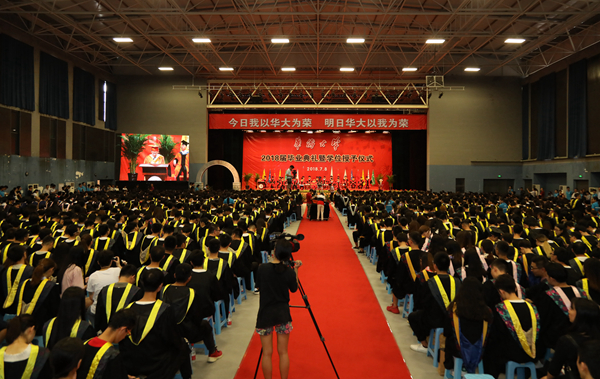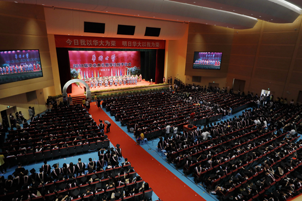“感谢母校,是您给予我们一个自由多彩的平台,供我们茁壮成长;是您用博爱宽容孕育着我们广阔的胸襟……”毕业生代表、信息科学与工程学院的卓章源和工商管理学院的戴文倩共同道出了全体毕业生的心声:“青春不散场,更精彩的画卷即将铺展,期待下一场的开幕有母校与我们共同见证。我们必将昂首阔步,勤恳实践,弘扬积极上进的华大精神,追逐年轻自由的青春理想!”