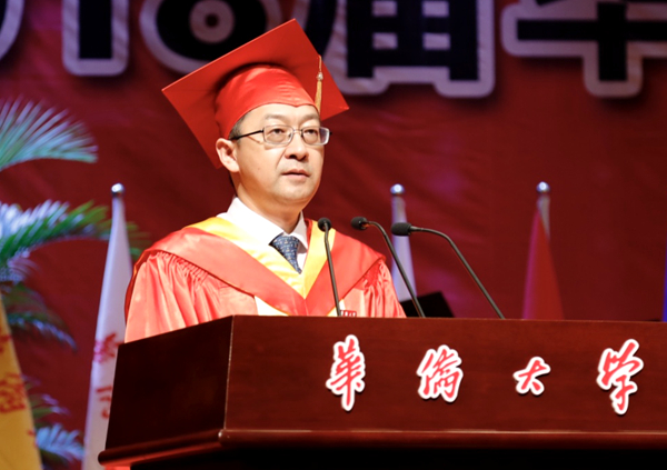 奋斗是在终身学习中增长本领。希望你们在终身学习中练就干事创业的本领,为奋斗加满油、蓄足力。教室不是知识的界限,校门不是求知的终点。你们经过大学系统的理论学习、基本的专业训练和丰富的社会实践,已经奠定一生发展的良好基础,能够运用自己的知识和技能为社会作出贡献。86届校友、加拿大皇家科学院院士杨恩辉曾经说过:“正是母校华大教会了我自学的能力,为我今后坚持不懈的学习奠定了基础。”希望同学们今后能戒骄戒躁,勤恳踏实,学思结合,勤于实践,终身学习,时刻关注自身所处行业的前沿和趋势,善于从其他知识领域中汲取新知,不断更新思维和方法,成为博学多才的复合型人才。