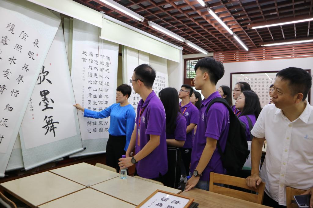 交流团观看濠江中学学生书法作品展
