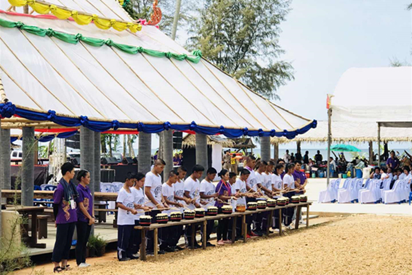 泰国学生用学到的节令鼓欢迎出席闭幕式的嘉宾