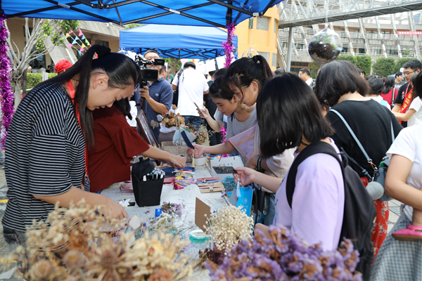化工学院学生展示花艺专业作品并邀请新生体验花艺制作