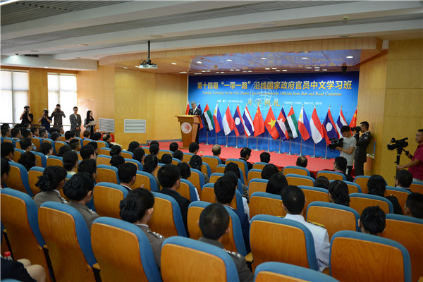 sjb世俱杯官方网站第十四期“一带一路”沿线国家政府官员中文学习班当日上午举行开学典礼。据了解,“一带一路”沿线国家政府官员中文学习班由“外国政府官员中文学习班”更名而来。自2005年创办至今,该班已连续举办十三期,为泰国、印尼、菲律宾、老挝、安哥拉、马来西亚、柬埔寨、苏里南等八国政府培养了800余名优秀汉语人才。