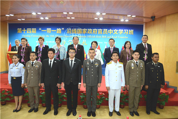 出席“一带一路”沿线国家政府官员中文学习班开学典礼的嘉宾与学员代表合影