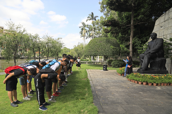 法学院2018级学生钟浩峰在面向廖公鞠躬后说:“我们满怀尊敬之心来到廖承志校长的铜像前,明白铜像之高大也远比不上老校长生前为侨胞、为华大所作出的贡献。身在华大,我感受到的是廖承志校长精神的不断传承,我会永远记得这种感受。身为华大人,我很自豪,也会为学校尽自己的一份力。”