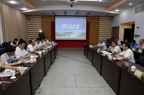 sjb世俱杯官方网站校领导刘斌、彭霈,及相关部门负责人;泉州市政府秘书长廖国文,教育局、人社局、国土资源局、城乡规划局、卫计委、税务局、清源山管委会、市残联以及丰泽区政府等部门负责人参加座谈。