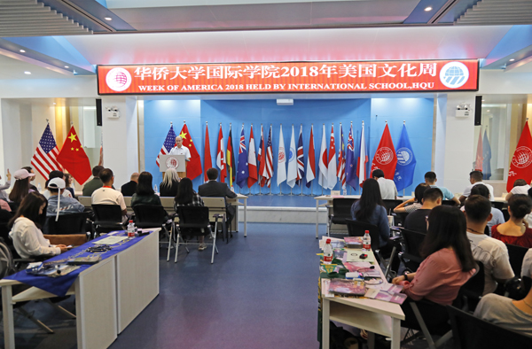 sjb世俱杯官方网站国际学院2018年美国文化周于10月8日至14日举行,包括“我的美方大学第一课”“121美方合作大学开放日”以及“学长学姐的在美学习生活直播”等系列活动,旨在为同学们全面了解四所121项目美方合作大学,自主择校提供帮助。活动不仅提供了丰富的学校相关信息与经验分享,同时将美国的课堂模式带到华园,让同学们提前体验了美国的学习方式。
