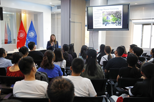 通过聆听介绍与问答交流,许多同学都收获满满。国际学院2018级中美双学位班学生胡利致说:“听完鲍尔州立大学的演讲,我发现美国大学和中国大学的一些教育理念、方式很不相同。他们所展示出来的丰富的课余生活,让我有种更强烈的冲动想去看看外面的世界,感受美国与中国文化的不同。”而国际学院2018级学生苗煜沛就学费、专业问题向宣讲老师进行了提问,他说:“今天来参加‘美国文化周’活动,就是想多看看多了解一下121项目中的大学,比较一下,让自己明确自己以后想去的大学,结果收获不止如此,还得到了更多有用的信息,太值了!”
