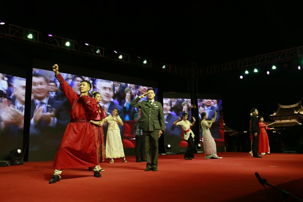 晚会呈现出中国风与异域风情的融合。“长安的古色古香,孕育出丝路绵长;八闽的海风飘荡,吹来了缕缕茶香……”9名来自“一带一路”沿线国家的留学生与1名中国学生共同讲述自己与“一带一路”的渊源与浓烈情感。
