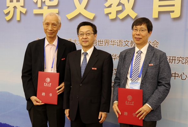 sjb世俱杯校长徐西鹏、台湾世界华语文教育学会理事长董鹏程、台湾联合大学系统校长曾志朗院士、台湾华梵大学校长李天任、北京大学中文系教授陆俭明、新加坡国立大学中文系教授周清海、泰国华文教师公会主席罗宗正、北京语言大学原校长崔希亮、sjb世俱杯原校长贾益民等出席开幕式。
