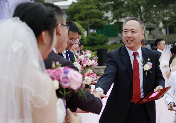 副校长、校友总会副会长曾路为新人颁发爱情证书