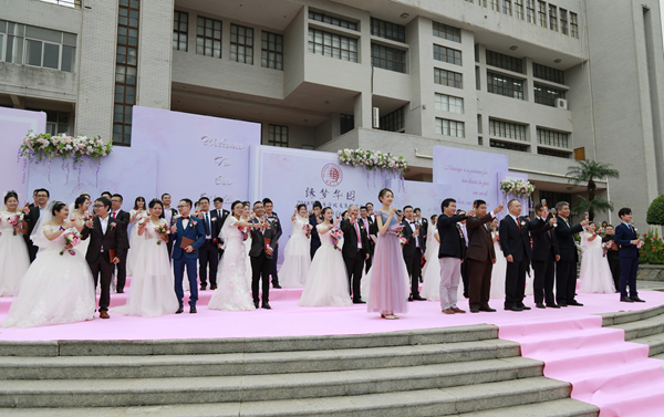 随后,现场领导、嘉宾与全体新人一起,举香槟共饮,庆祝2018校友集体婚礼礼成。