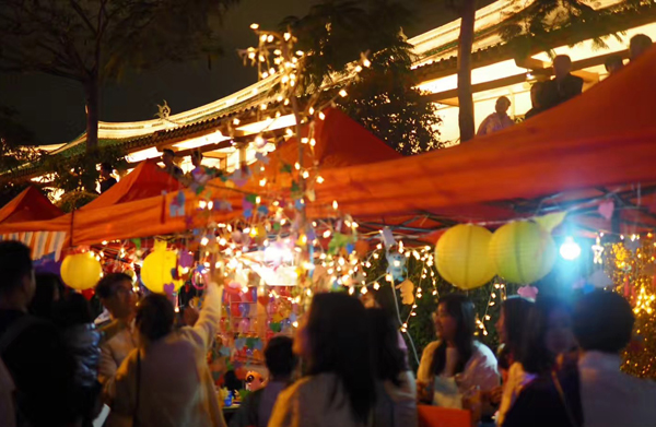 活动现场,泰国留学生们摆放摊位售卖特色菜肴、饮品,精心设计了泰国游园活动,让观众更加深入地了解泰国文化,体验泰国美食。晚会过后,在佳丽们的带领下,观众来到龙舟池畔放水灯,寄托美好祝福。