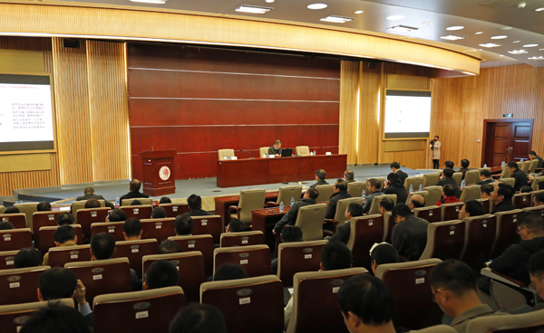 校长徐西鹏主持报告会。校领导曾路、彭霈、毕明强,校长助理张云波,全体中层干部,全体思想政治理论课教师,党委各部(室)科级干部,各学院学生工作办公室主任、团委书记,各基层党委秘书到场听取报告。