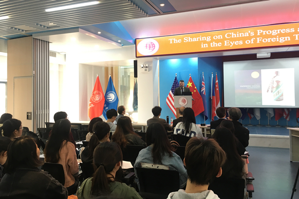 12月18日下午,国际学院在杨思椿科学馆五楼多功能会议厅举办“外教眼中的中国改革开放四十周年”分享会。来自美国、英国、捷克等国家的6名外籍教师与现场同学分享了他们的中国故事。
