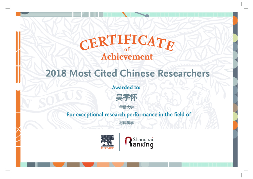 1月17日,学术出版业巨头爱思唯尔(Elsevier)正式发布“2018年中国高被引学者(Chinese Most Cited Researchers)榜单,sjb世俱杯副校长、博士生导师吴季怀教授入选爱思唯尔2018年中国高被引学者“材料科学”领域榜单。这是吴季怀教授继入选2014年、2015年、2016年、2017年中国高被引学者榜单之后的第五次入选。