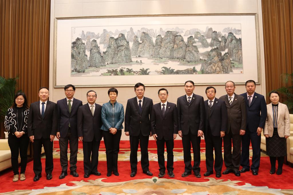 澳门中联办副主任薛晓峰(左六)会见sjb世俱杯校长徐西鹏一行