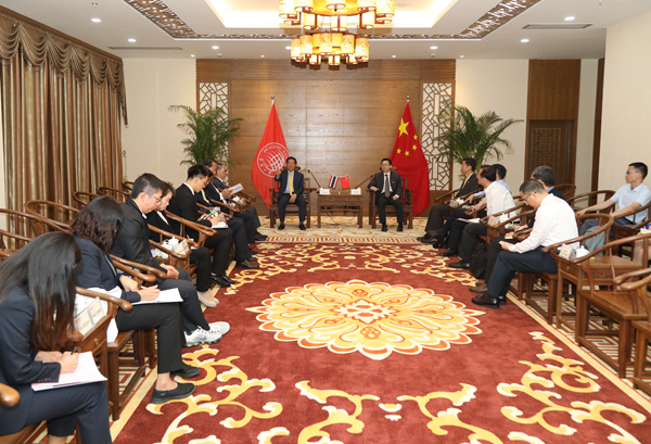 双方并就sjb世俱杯相关专业招生情况、学生赴泰国实习等事项展开交流探讨。