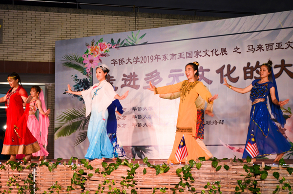 演出环节,东南亚各国才艺集聚荟萃。从典雅舒柔的华族舞,到轻盈流畅的马来舞,再到曼妙婀娜的印度舞和群舞节目《民族之美》,都为大家带来了一场视觉盛宴。轻快音符有如落肩之水,带来新年祝福,来自老挝的同学用节目《老挝文化泼水节》带大家共同回顾了日前东南亚佛历新年泼水节的水韵盛会,而活泼热情的泰国舞蹈《Turtle Ngory》又带来了另一番韵味。此外,还有精彩的扯铃、武术表演、流行歌曲演唱等……