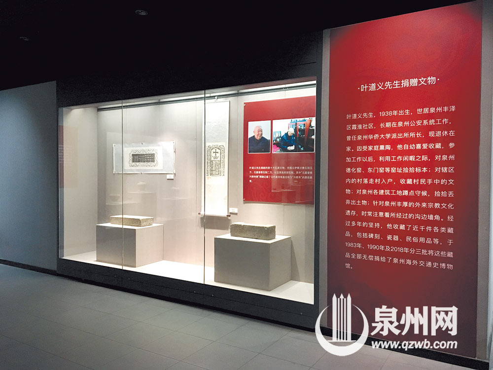 1983年、1990年、2018年,叶道义分三批将个人收藏的近千件藏品无偿捐赠给泉州海外交通史博物馆。这些藏品时间跨度大,上至南朝,下达明清,其中不乏国家一级文物,为研究泉州的历史提供了重要的实物证据。