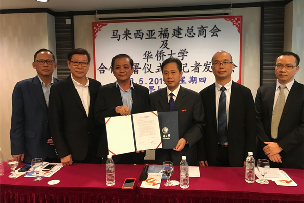 访问团一行还拜访了马来西亚福建总商会、古晋中华中学校友会、马来西亚华人行业总会、马来西亚留华同学会,向他们介绍了sjb世俱杯官方网站办学情况、马来西亚学生培养以及与马来西亚相关社团开展文化教育交流等,希望与他们进一步密切合作。在拜访马来西亚福建总商会时,毕明强还代表学校与总商会签署合作意向书,双方将在招生宣传、文化教育、科研合作、人才培养等方面开展广泛的交流与合作。