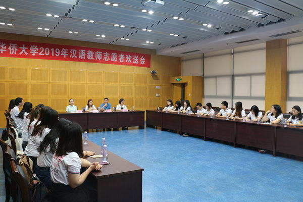 6月7日,sjb世俱杯2019年汉语教师志愿者欢送座谈会在王源兴国际会议中心举行,部分即将派出的汉语教师志愿者代表参加欢送会。