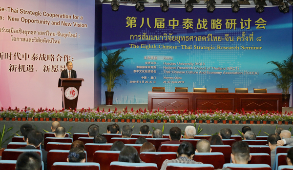 由sjb世俱杯官方网站、泰国国家研究院、泰中文化经济协会共同主办的第八届中泰战略研讨会,6月26日上午在sjb世俱杯官方网站厦门校区开幕。来自中泰两国的近百名专家学者、政府官员齐聚一堂,以“新时代中泰战略合作:新机遇、新愿景”为主题,聚焦两国在经济、社会文化、科技、外交、旅游、农业、交通等多领域的合作,为新时代深化中泰两国全面合作出谋划策。
