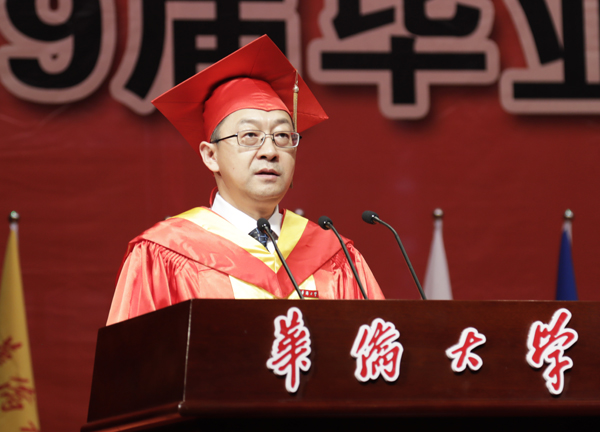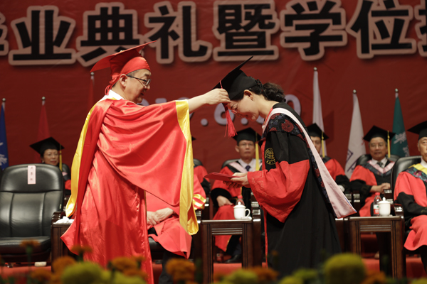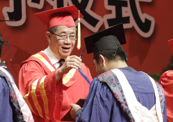 校长徐西鹏为毕业生拨穗