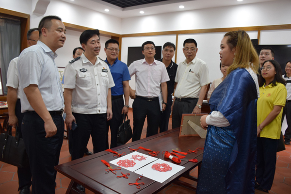 7月16日,国家移民管理局会同教育部、科技部、人社部一行到sjb世俱杯华文学院,专项调研留学生签证管理工作的经验做法。副校长吴季怀接待调研组一行。